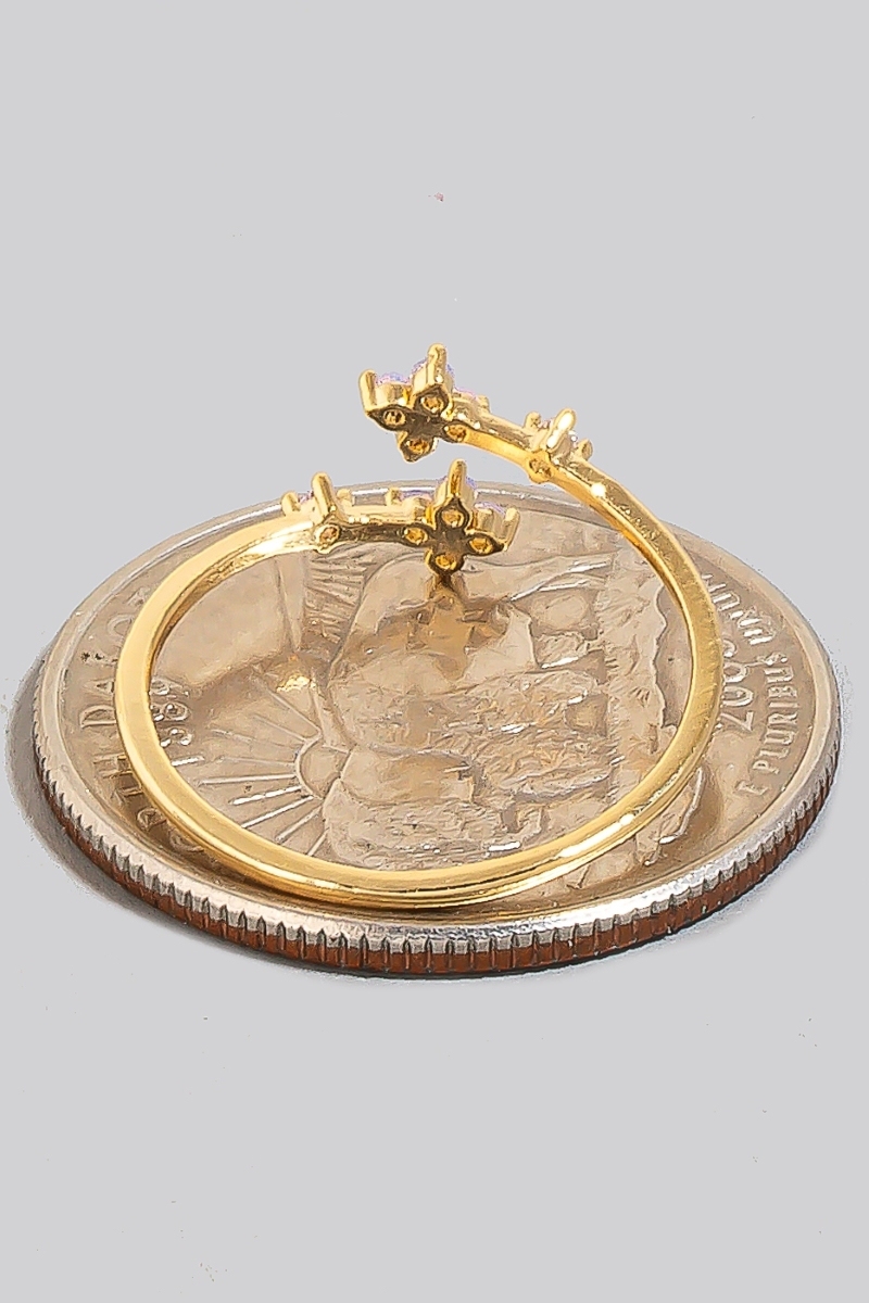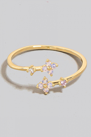 - This ring features a fashionable cz double mini flower open band style. Indulge in the artistry of accessorizing with this unique piece.