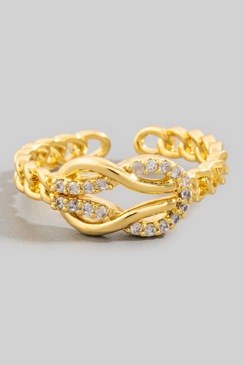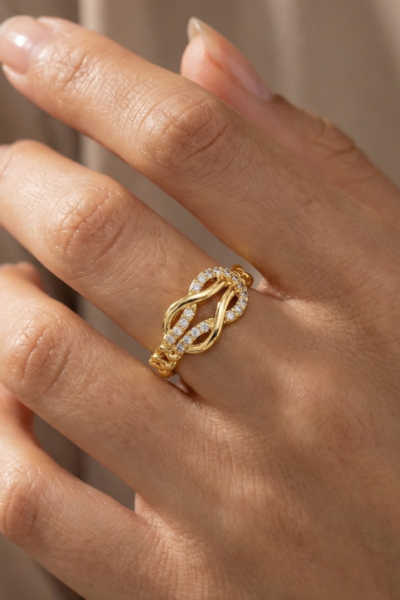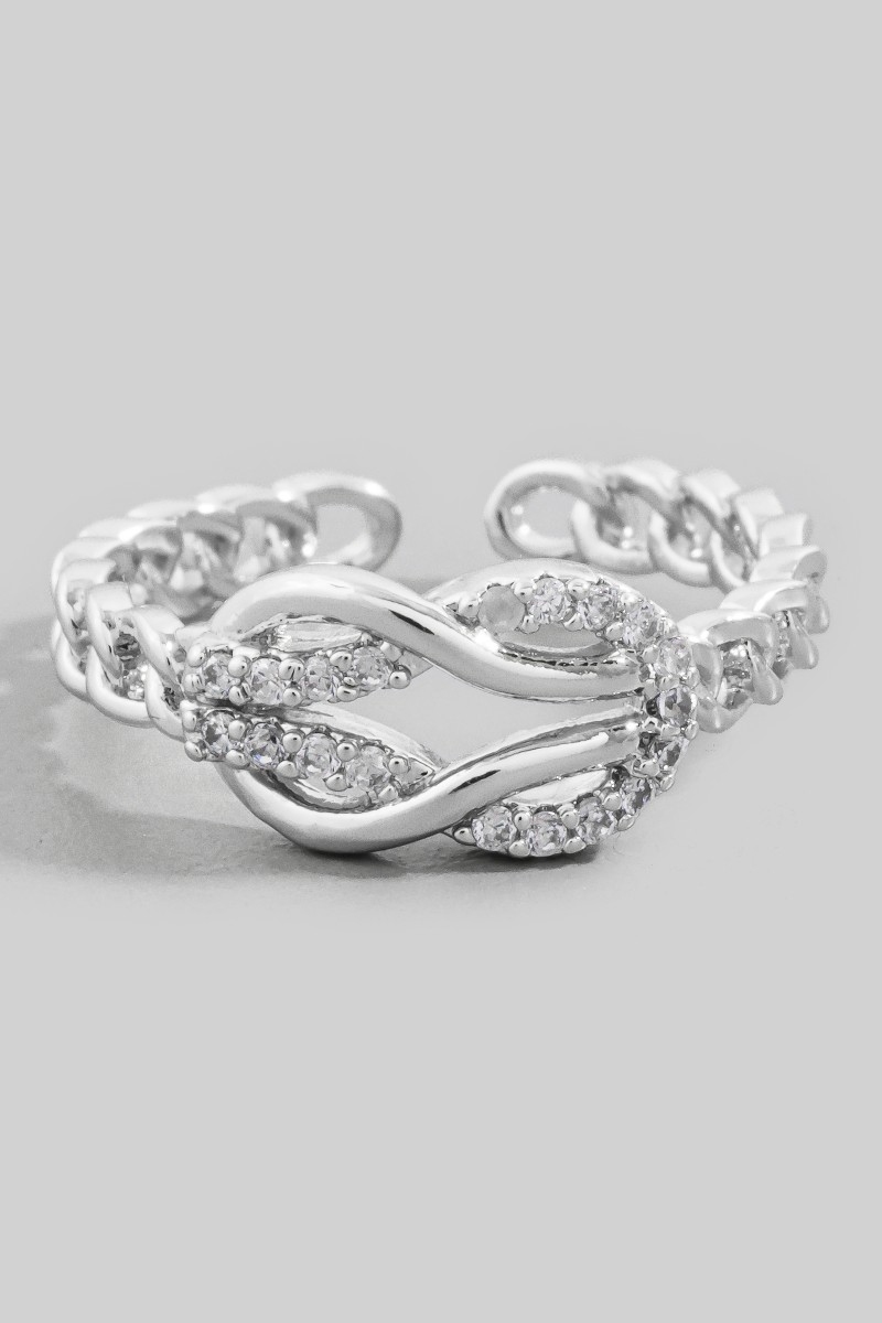 - This ring displays a fashionable cz infinity loop chain style. Unveil a new dimension of sophistication as this ring effortlessly enhances the elegance of your ensemble.