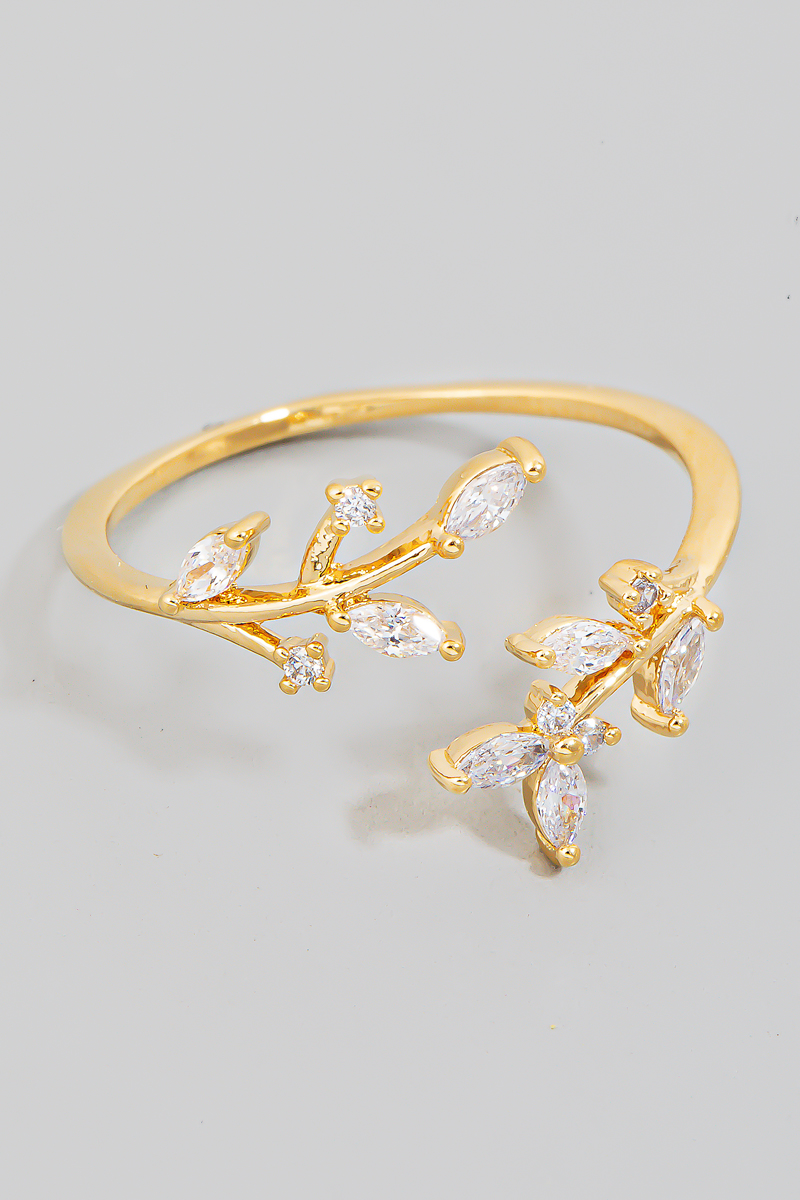 • This ring showcases a unique dainty studded fern open band style. Step into a world of refined taste as this accessory effortlessly refines the details of your outfit.