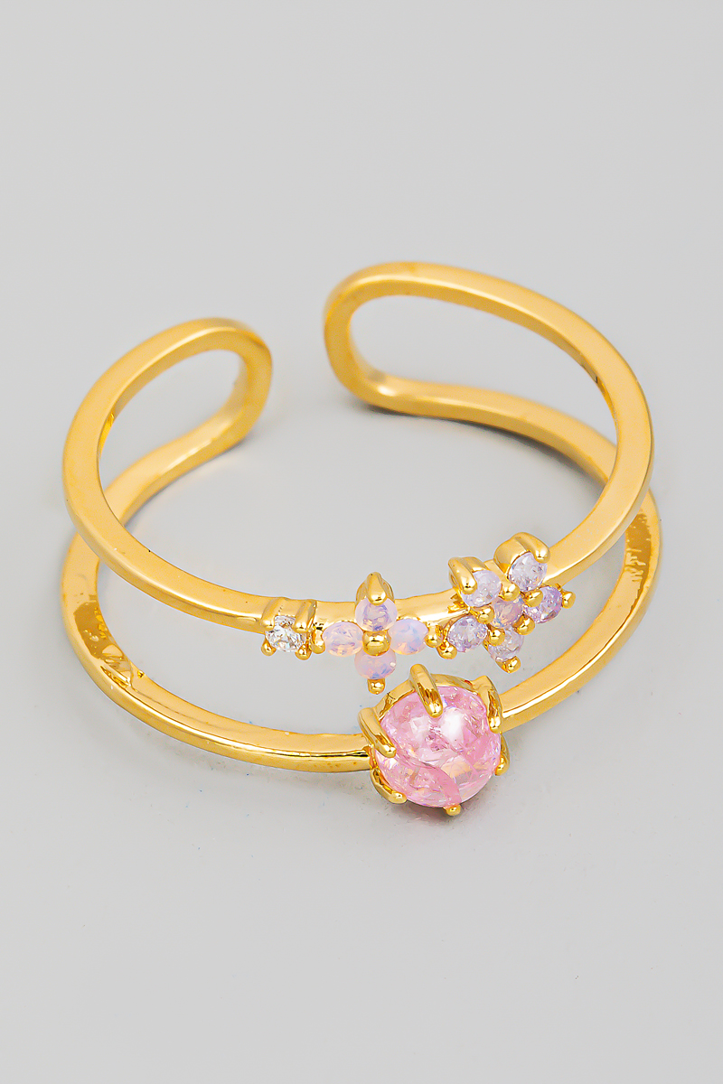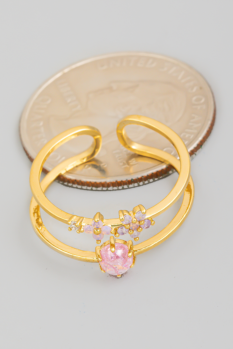 Gold Dipped Cz Pave Row And Star Open Band Ring