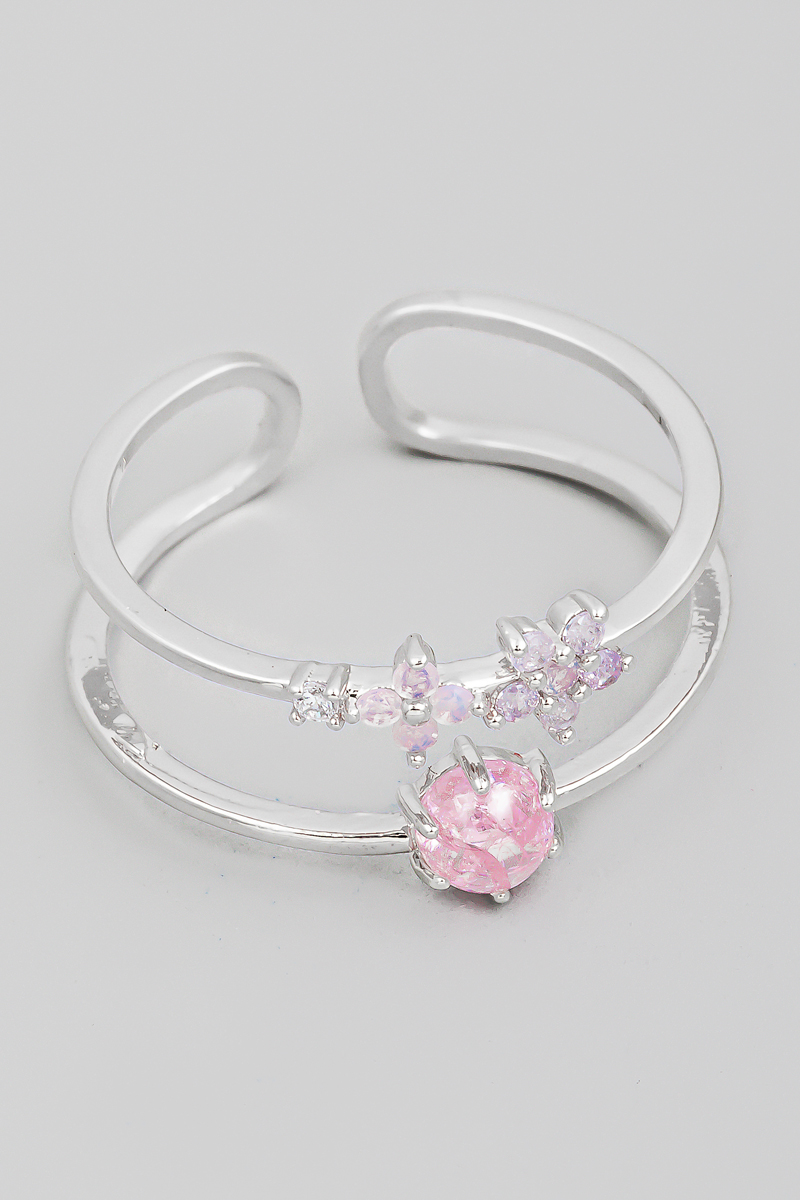 Gold Dipped Cz Moon Star And Butterfly Ring