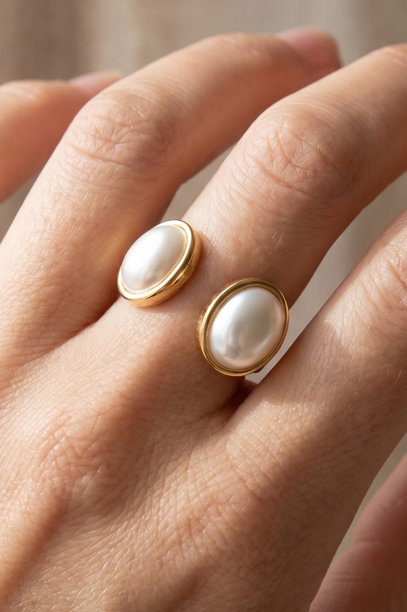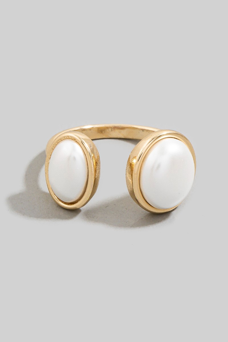 - This ring brings a luxurious double pearl open band style. Immerse yourself in fashion finesse with this statement ring.