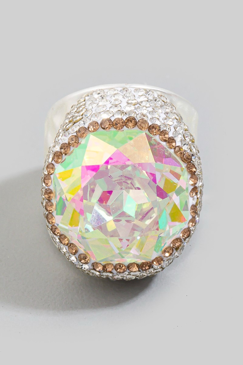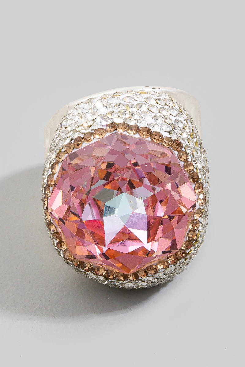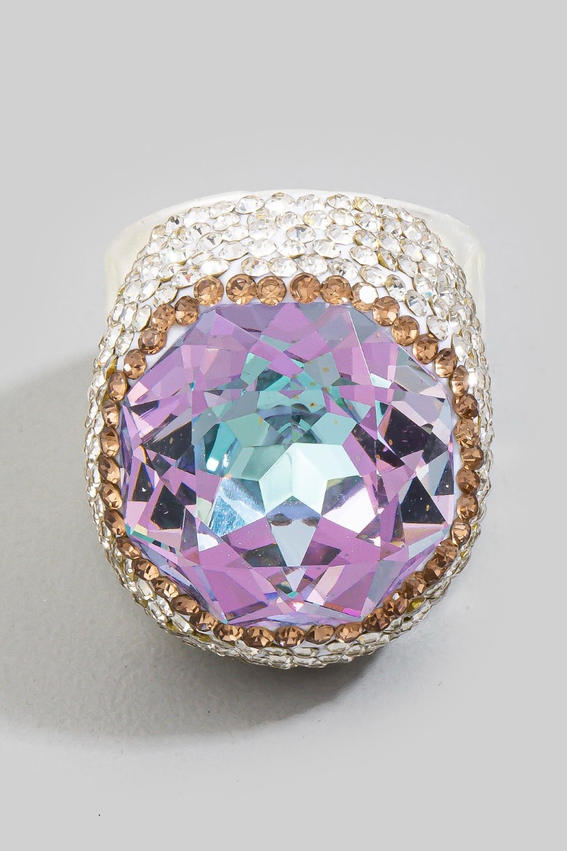 - This ring displays a vibrant faceted crystal stone statement style. Savor the allure of detailed craftsmanship in this exquisite ring.
