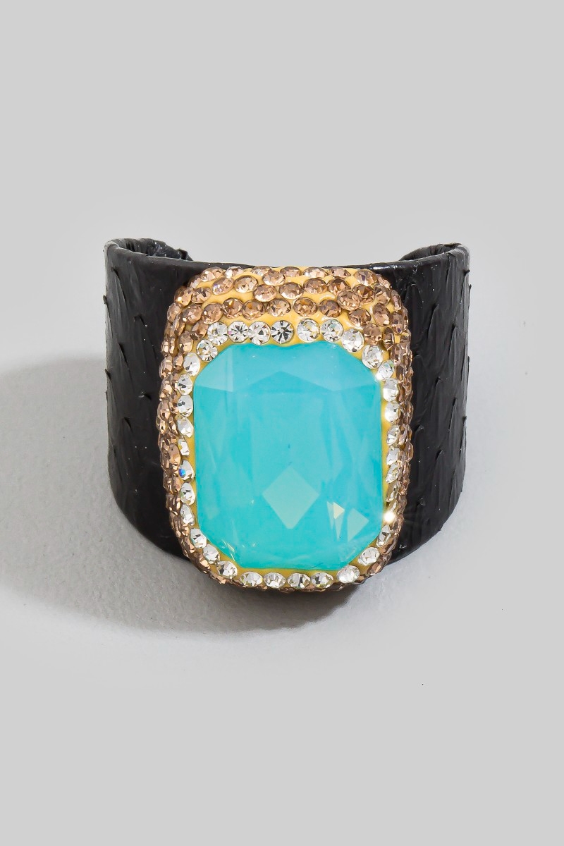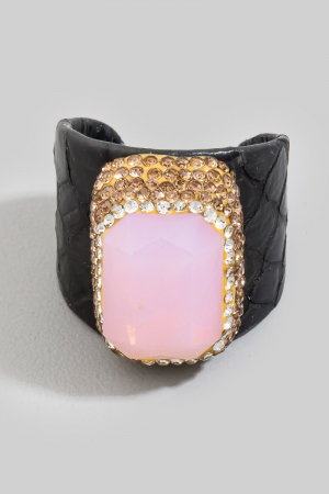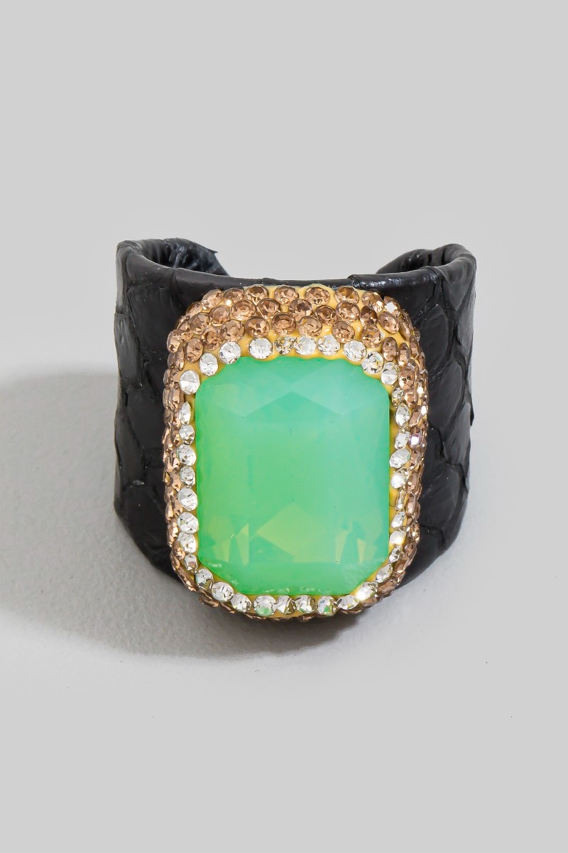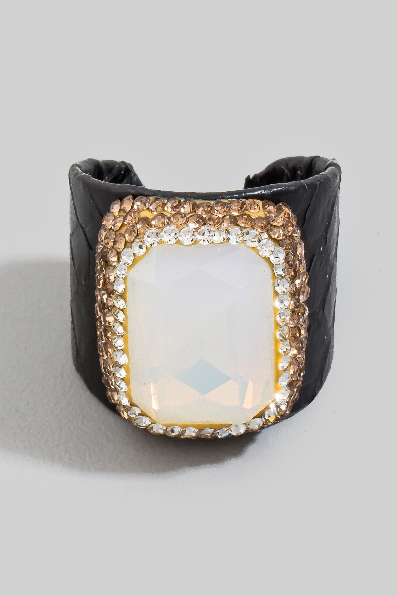 - This ring adds a modern faceted opal stone pave leather band statement style. Explore a refined sense of style with this ring, seamlessly elevating the chic factor of your look.