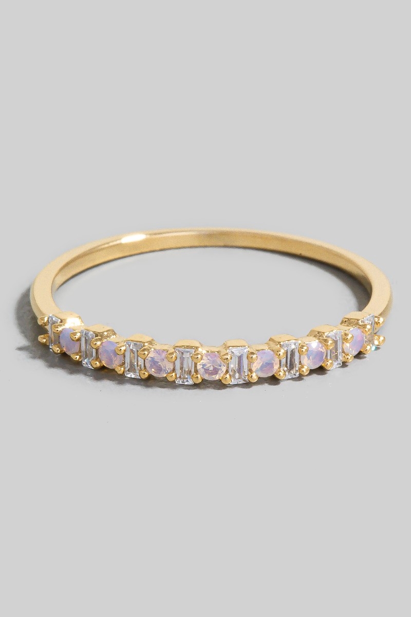 • This ring showcases a timeless gold dipped assorted cubic zirconia delicate style. Revel in the intricate design that effortlessly distinguishes this ring, making it a statement piece.