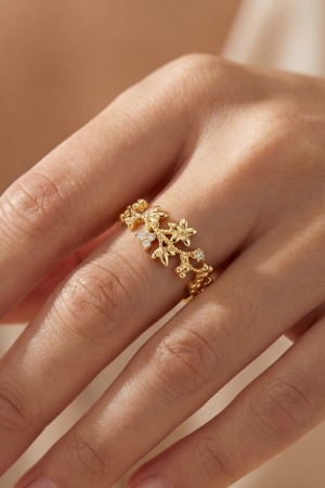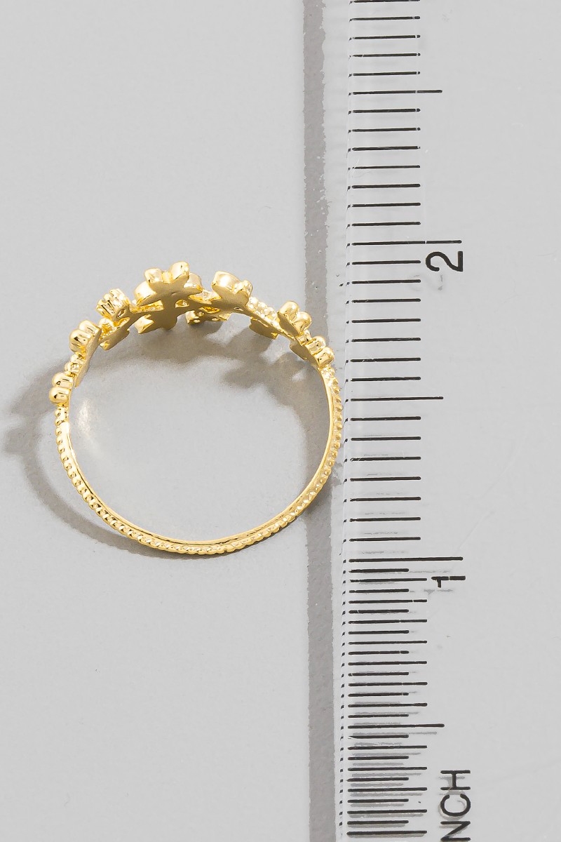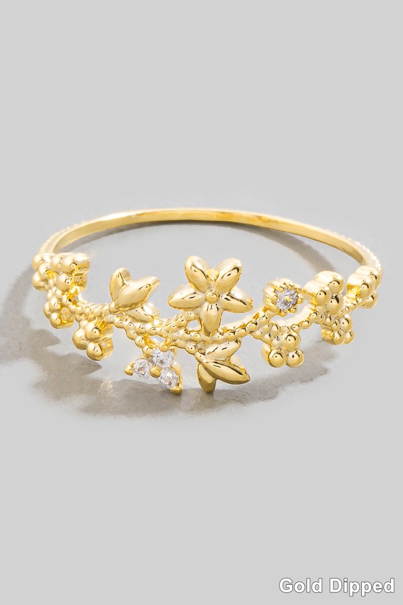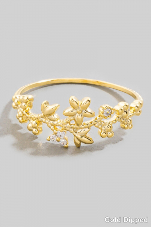 - This ring brings a unique gold dipped cubic zirconia floral star style. Savor the craftsmanship that goes beyond the ordinary, as this ring effortlessly captivates attention.
