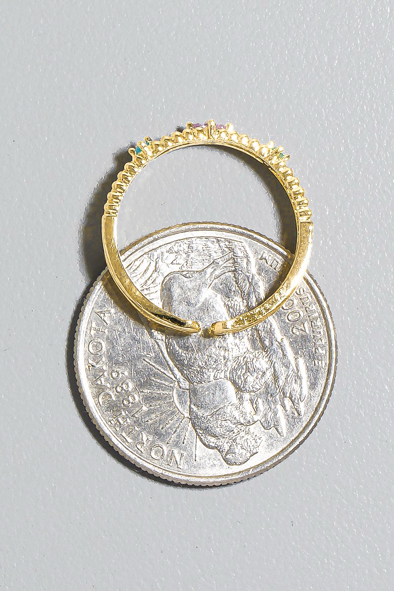 - This ring showcases a unique gold dipped cubic zirconia flowers layered open band style. Celebrate the art of accessorizing with this piece that effortlessly encapsulates modern trends.