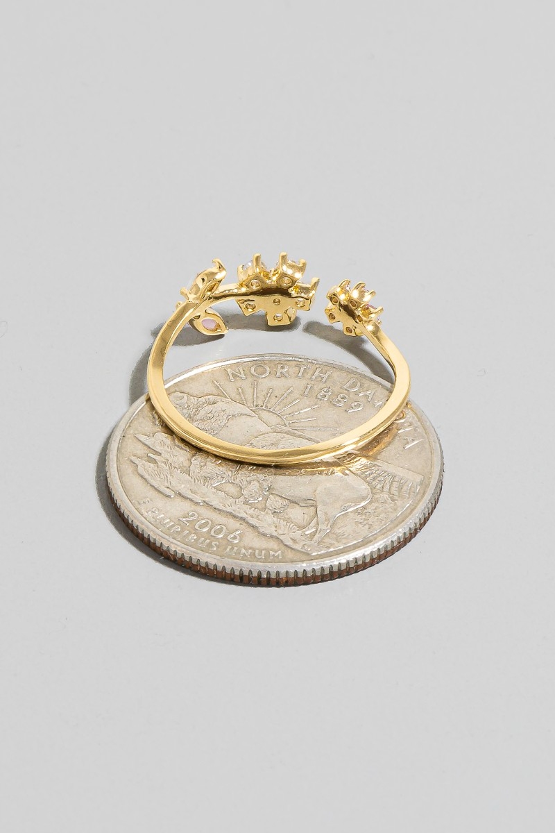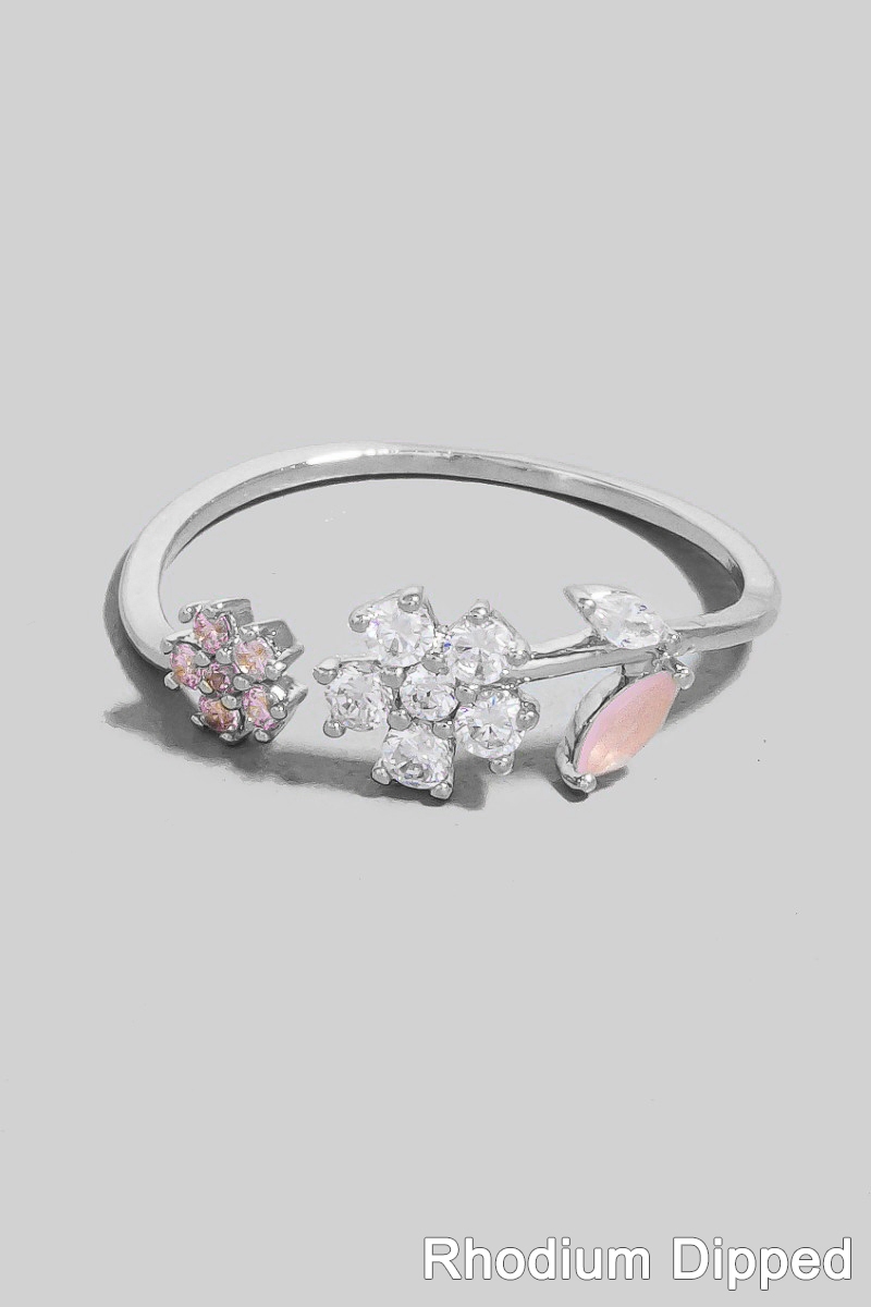 • This ring brings a stunning gold dipped cubic zirconia flowers open band style. Discover the perfect balance of subtlety and flair as this ring effortlessly completes your look.