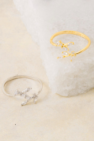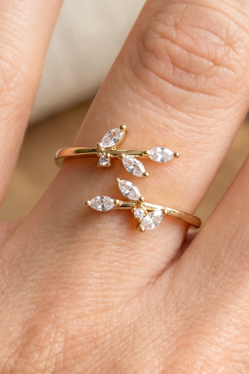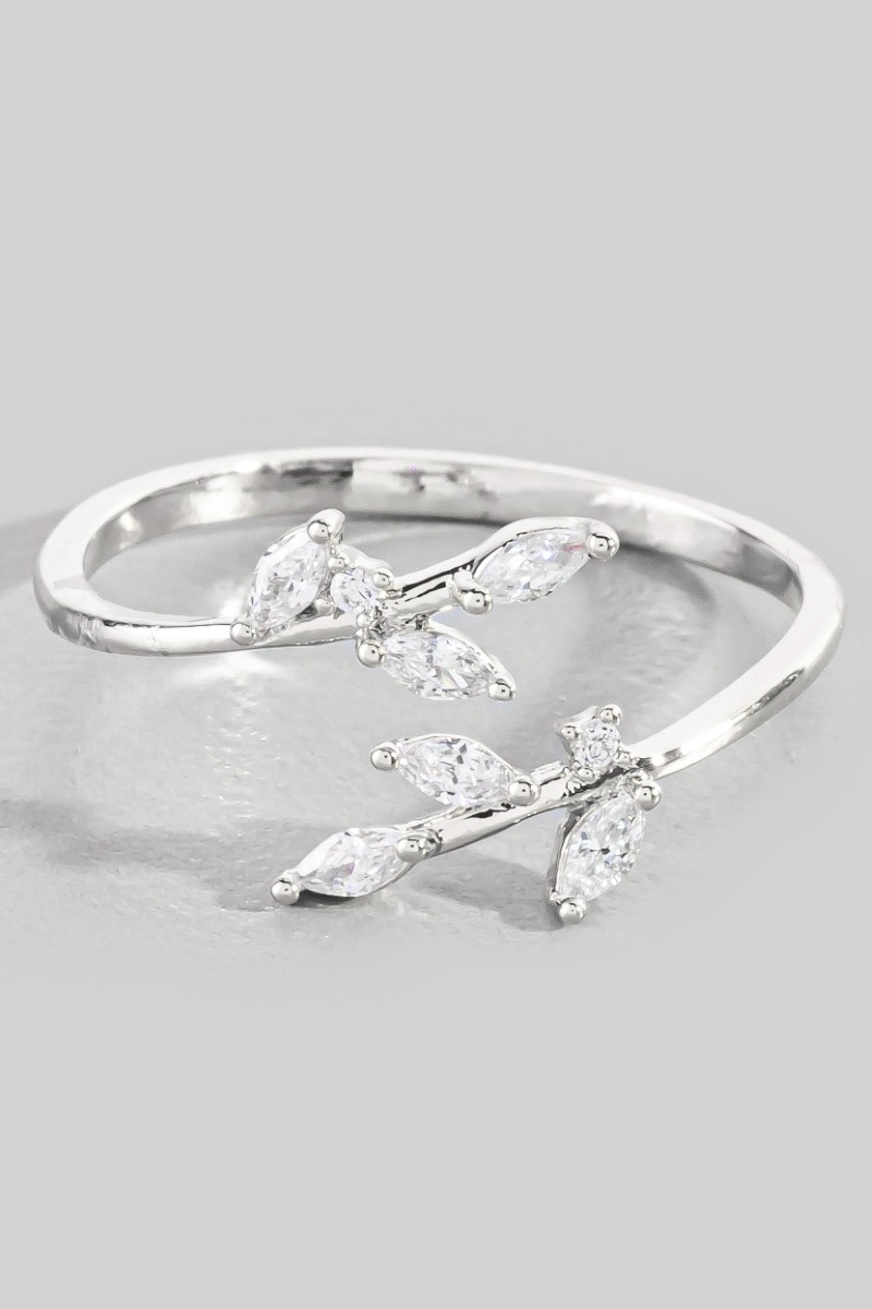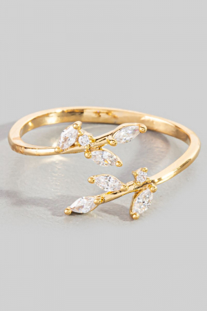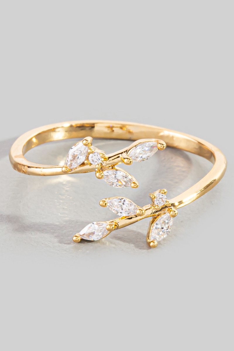 - This ring features a fashionable gold dipped cubic zirconia open leaf twist style. Experience the joy of accessorizing with this piece that effortlessly combines versatility and charm.