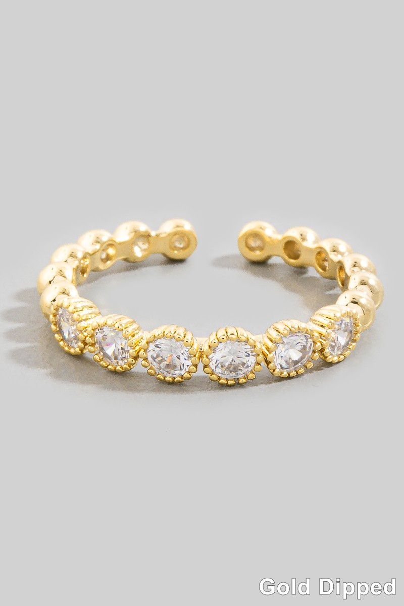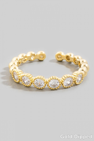 - This ring features a fashionable gold dipped cubic zirconia pave adjustable band style. Elevate your ensemble with this ring that effortlessly captures the essence of refined fashion.