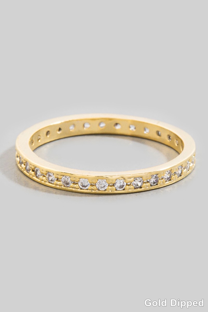 - This ring brings a luxurious gold dipped cubic zirconia pave band eternity style. Celebrate the art of accessorizing with this piece that effortlessly encapsulates modern trends.