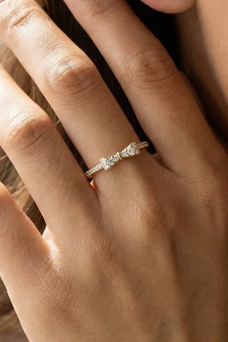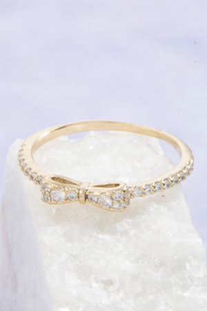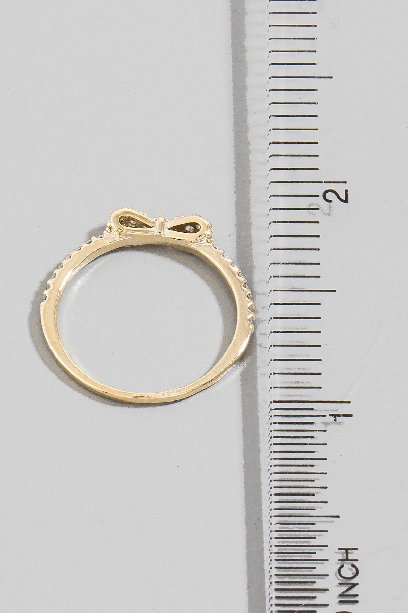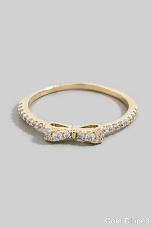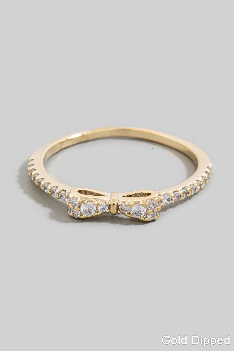 - This ring displays a fashionable gold dipped cubic zirconia ribbon bow style. Delight in the nuanced details that make this ring a testament to fine design and impeccable taste.