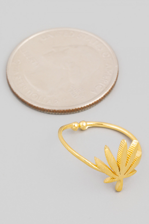 - This ring showcases a unique gold dipped delicate marijuana leaf adjustable style. Unveil modern elegance with this subtly intricate ring.