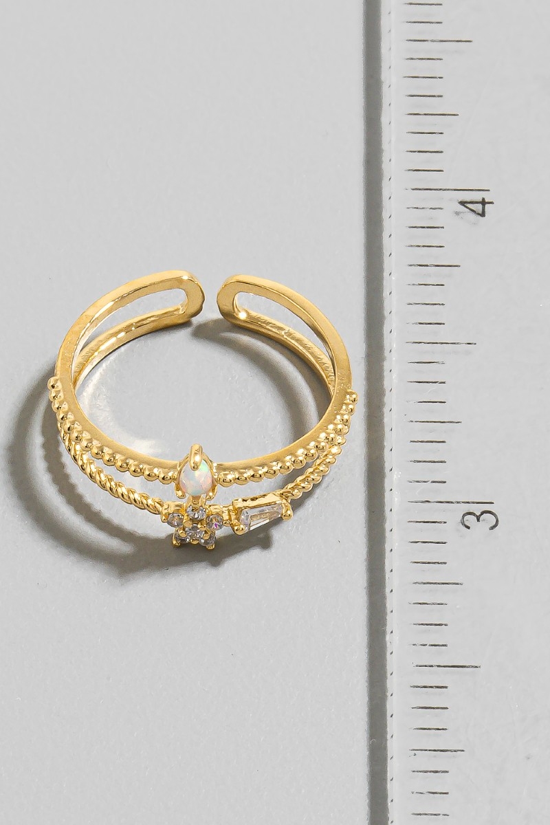 - This ring brings a stunning double row gold dipped cubic zirconia flower opal style. Experience a burst of creativity in accessorizing as this piece effortlessly sets the tone for your unique style.