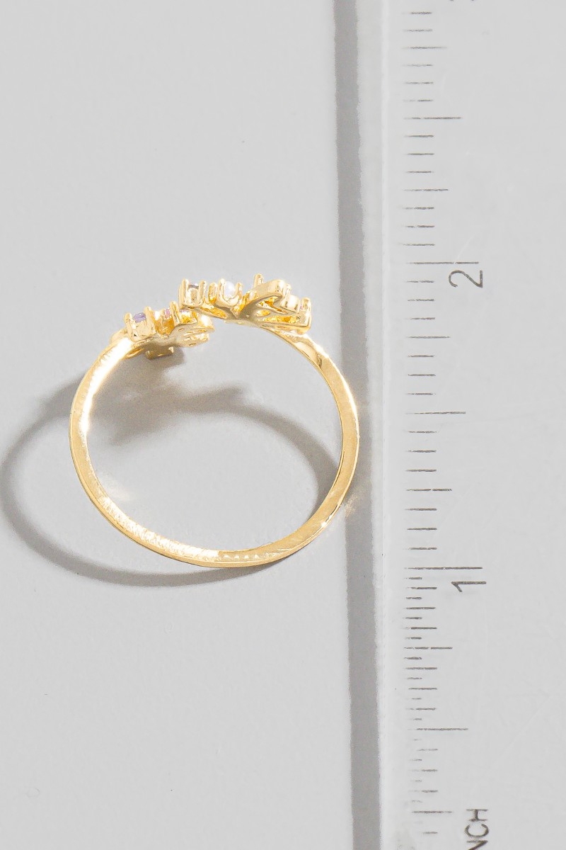 Gold Dipped Cz Leaf And Butterfly Open Ring
