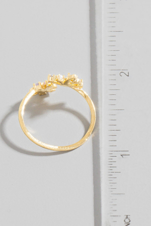 Gold Dipped Dainty Opal Rhinestone Leaf Open Ring
