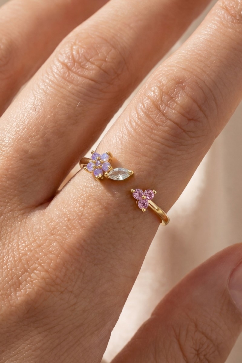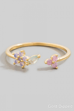 - This ring introduces a stunning gold dipped cubic zirconia cluster open band style. Redefine your look effortlessly with this standout, on-trend piece.