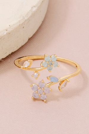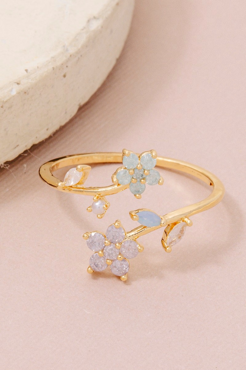 - This ring displays a fashionable gold dipped cubic zirconia floral open band style. Unveil a new dimension of sophistication as this ring effortlessly enhances the elegance of your ensemble.