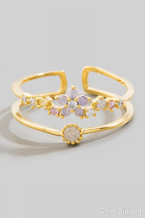 - This ring brings a unique gold dipped cubic zirconia flower cluster double band style. Immerse yourself in fashion finesse with this statement ring.