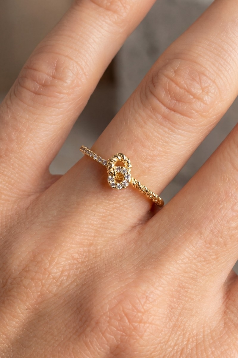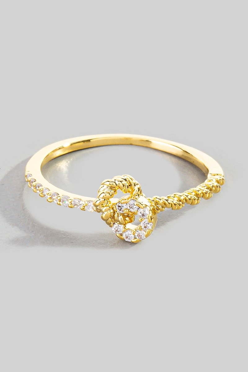 - This ring brings a stunning gold dipped cubic zirconia knot twist style. Immerse yourself in fashion finesse with this statement ring.
