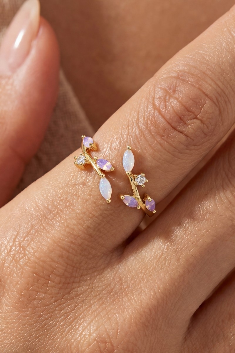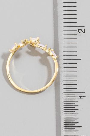 Gold Dipped Cz Opal Cluster & Butterfly Double Band Ring