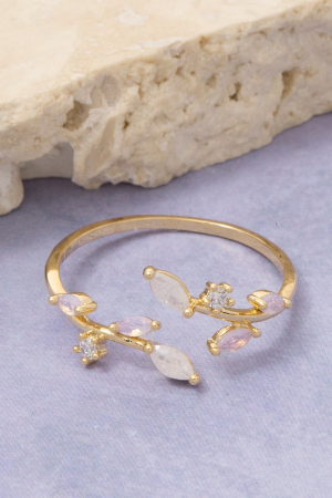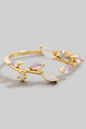 • This ring displays a vibrant gold dipped cubic zirconia leaf wrap open style. Celebrate individual style with this versatile, eye-catching addition.