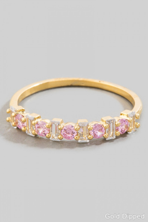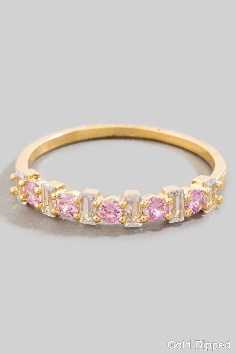 - This ring adds a modern gold dipped cubic zirconia and baguette band style. Redefine your look effortlessly with this standout, on-trend piece.