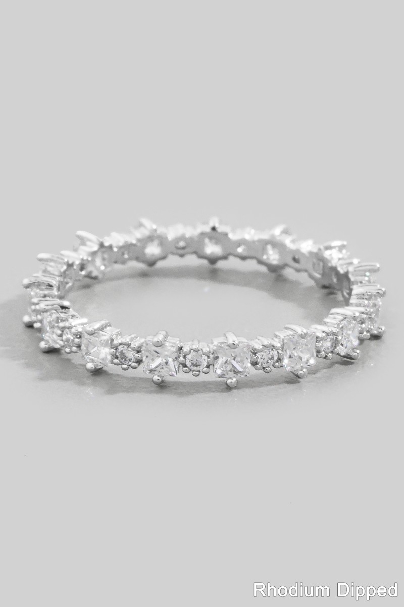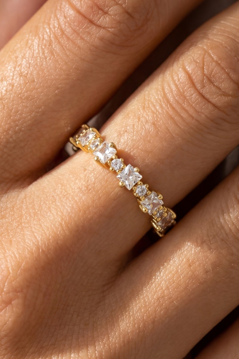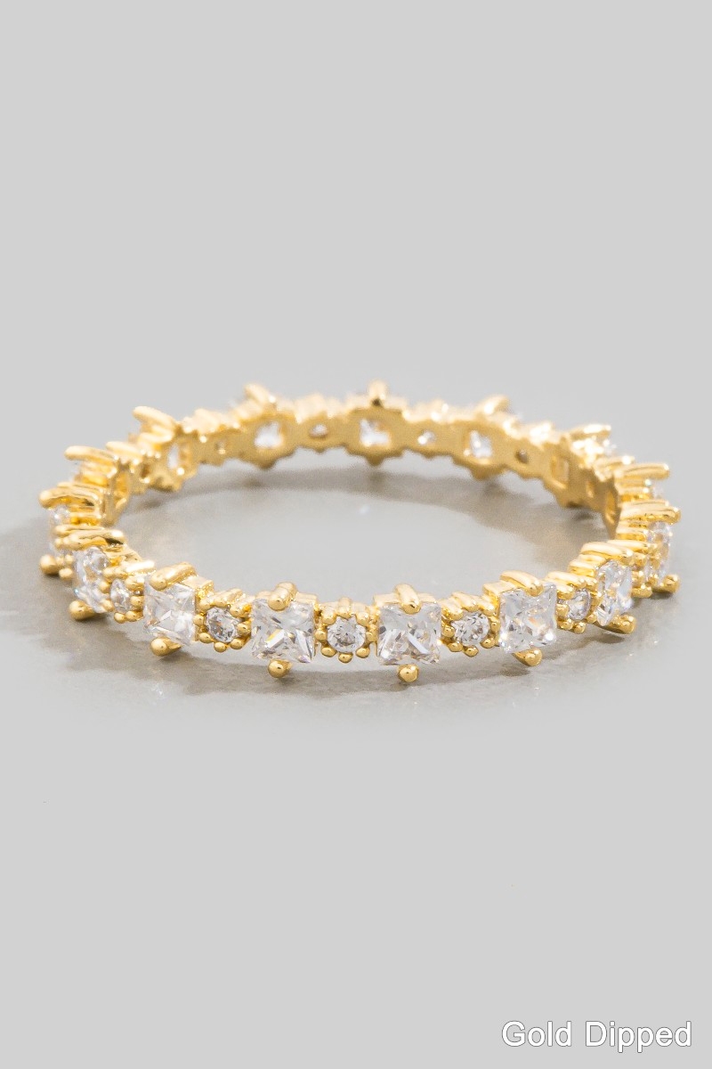 • This ring introduces a unique gold dipped cubic zirconia square eternity band style. Discover the perfect balance of functionality and fashion.