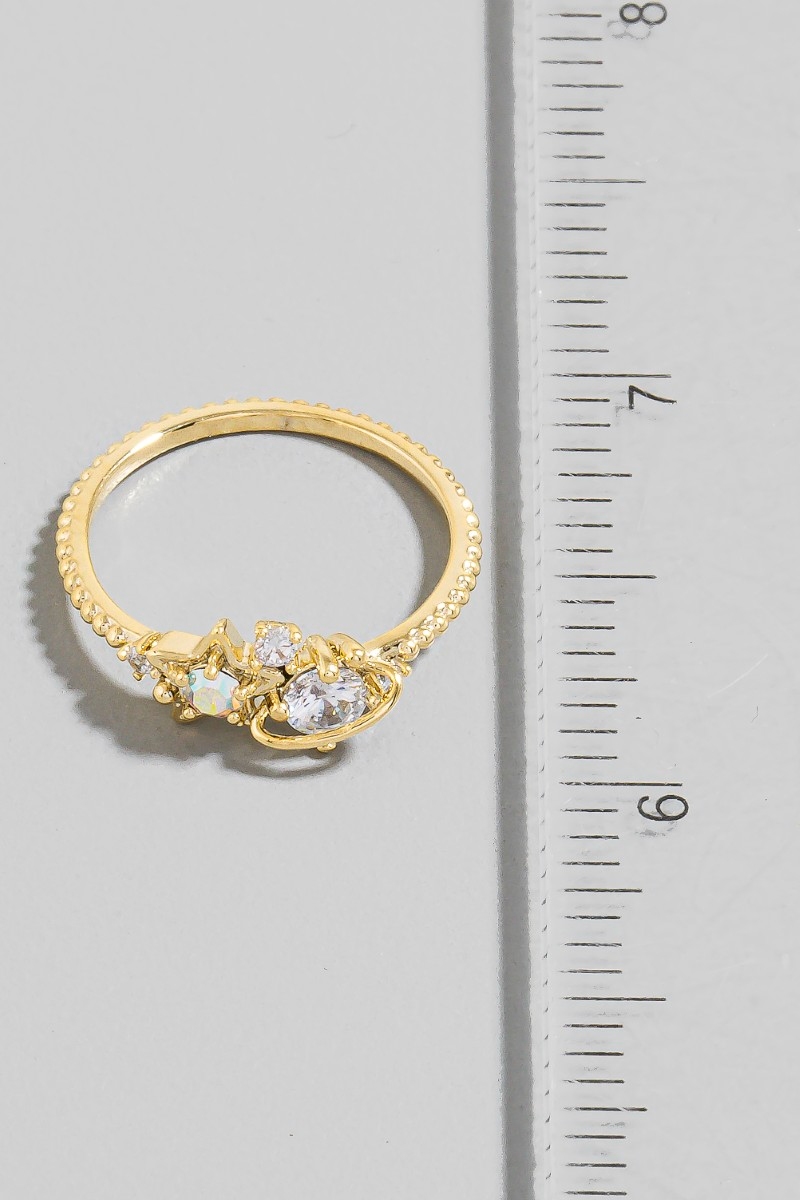 Gold Dipped Cz Moon Star And Butterfly Ring