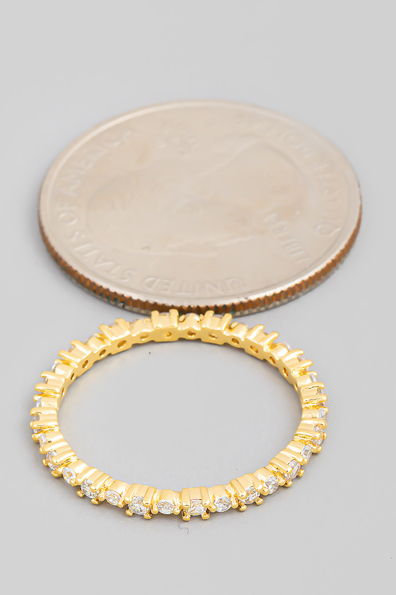 - This ring displays a vibrant gold dipped delicate rhinestone studded eternity fashion style. Savor the craftsmanship that goes beyond the ordinary, as this ring effortlessly captivates attention.
