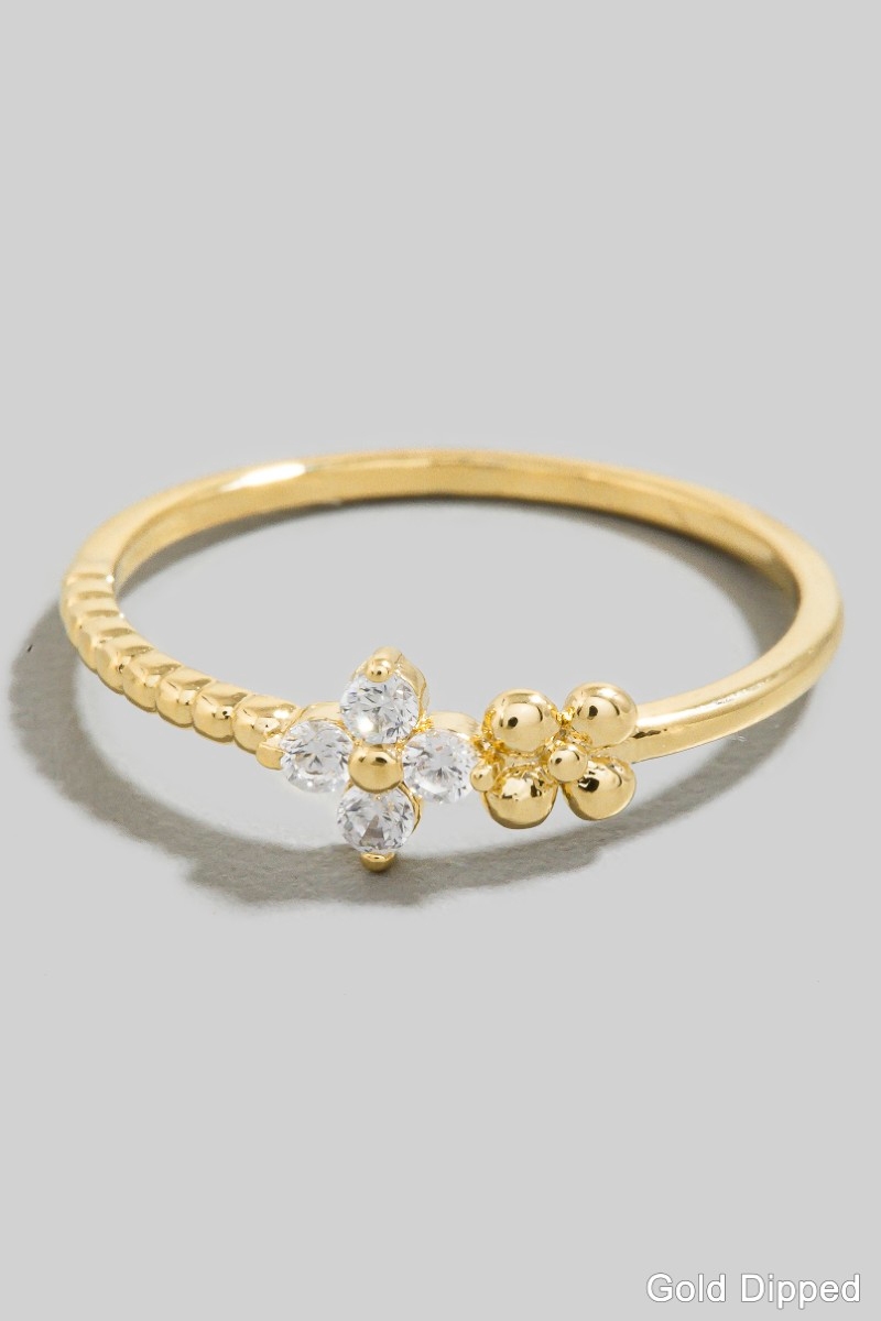 - This ring adds a modern gold dipped floral cubic zirconia style. Explore a refined sense of style with this ring, seamlessly elevating the chic factor of your look.