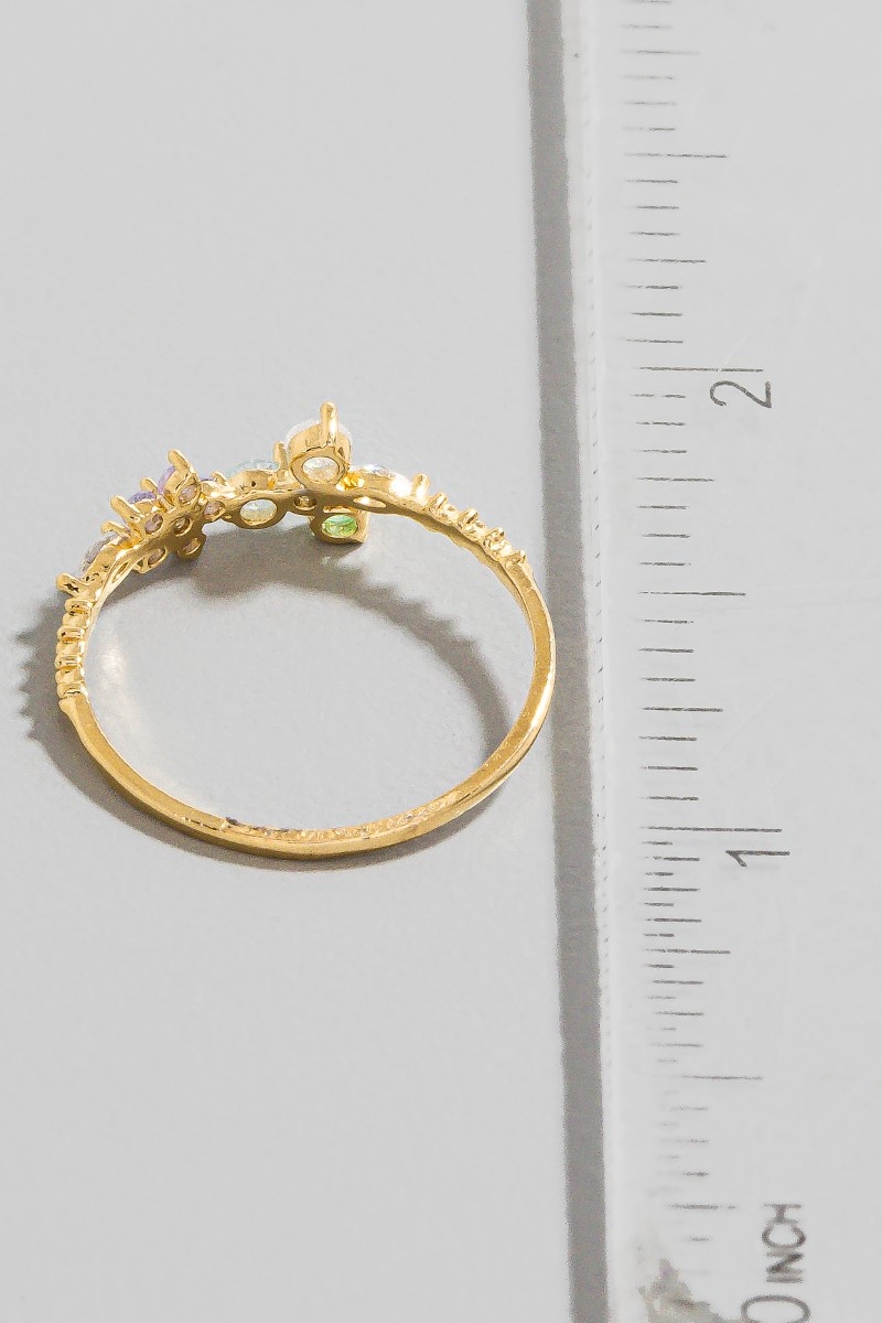 - This ring brings a luxurious floral cubic zirconia studded gold dipped style. Unveil modern elegance with this subtly intricate ring.