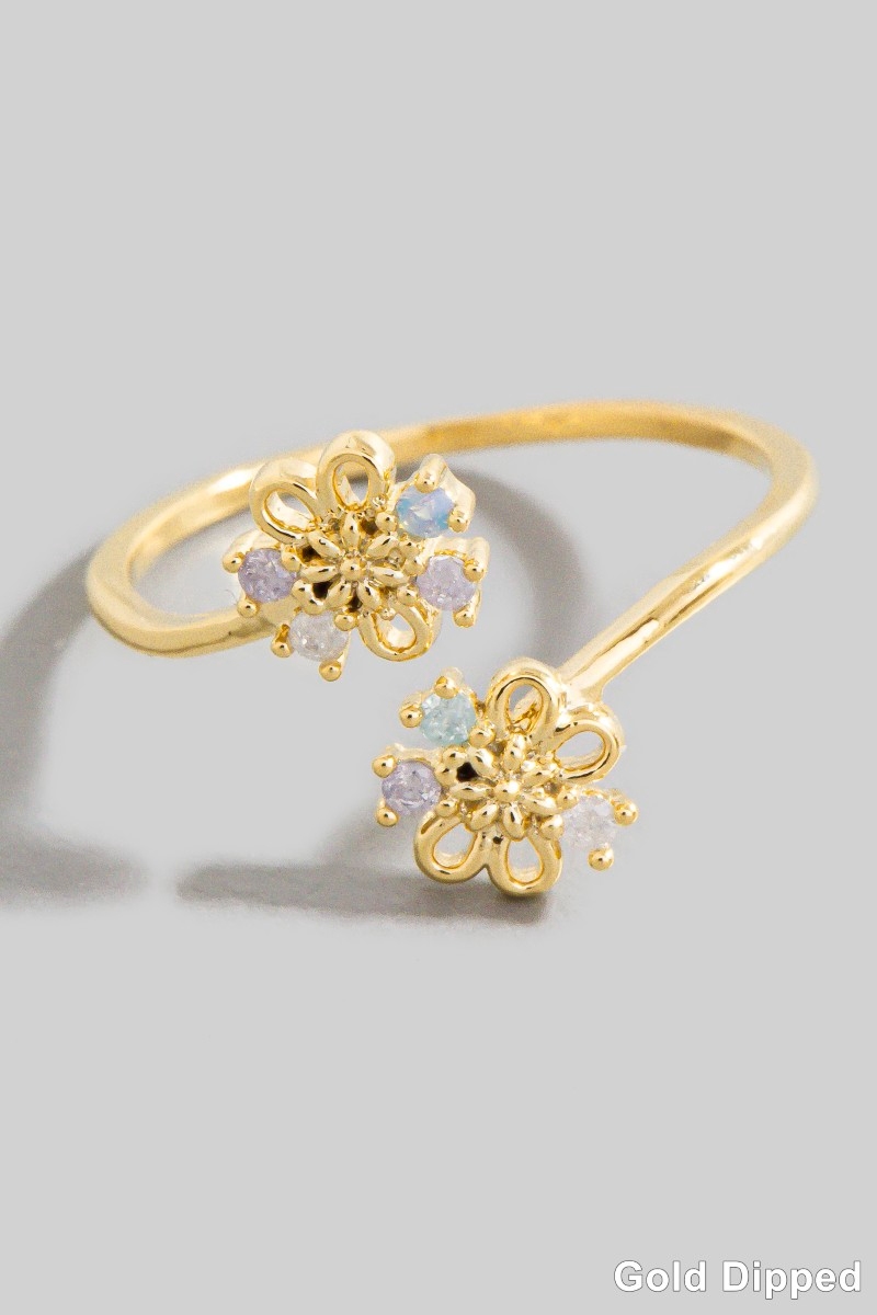• This ring displays a vibrant gold dipped flower twist style. Delight in the intricate details that make this ring an essential element in expressing your fashion identity.