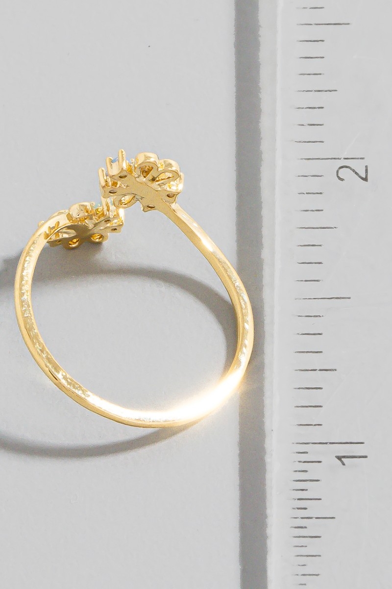 Gold Dipped Cz Opal Cluster & Butterfly Double Band Ring