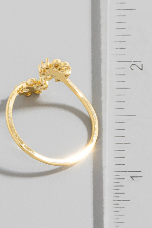 Gold Dipped Cz Leaf And Butterfly Open Ring