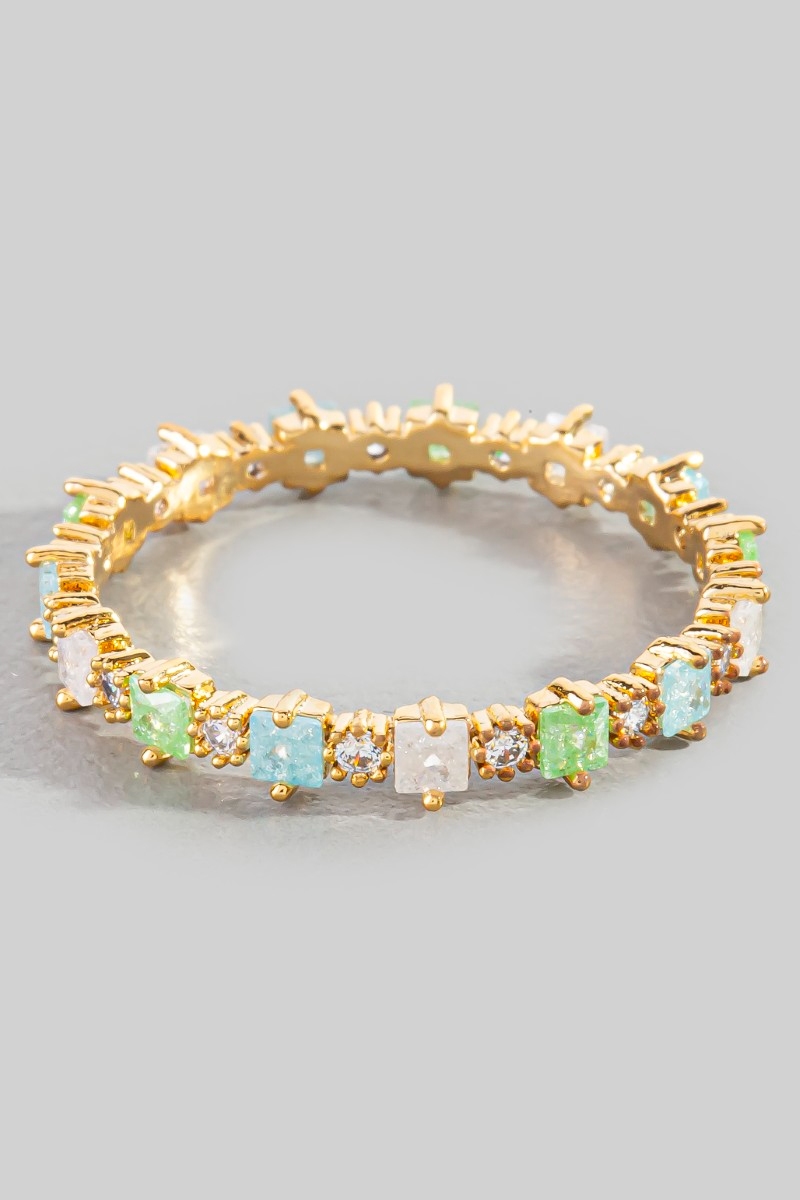 • This ring brings a stunning gold dipped square cubic zirconia studded style. Celebrate individual style with this versatile, eye-catching addition.