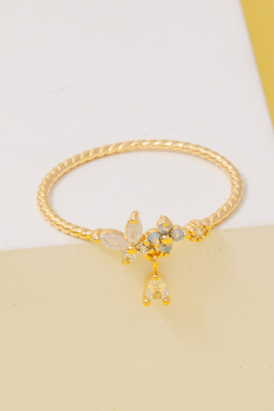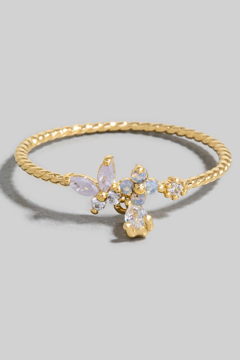 - This ring introduces a unique gold dipped twisted cubic zirconia butterfly flower style. Immerse yourself in fashion finesse with this statement ring.