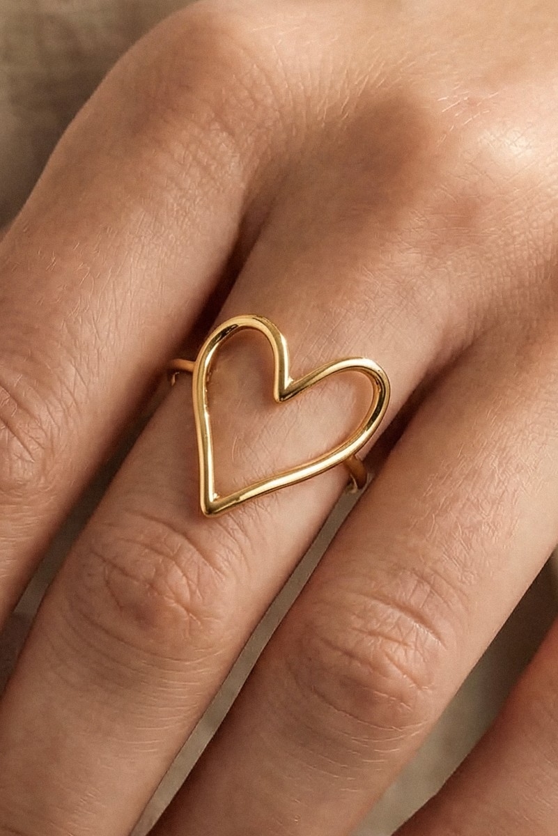 - This ring adds a modern heart band style. Revel in the intricate design that effortlessly distinguishes this ring, making it a statement piece.
