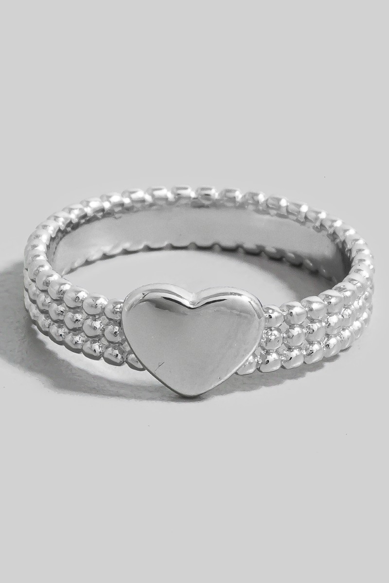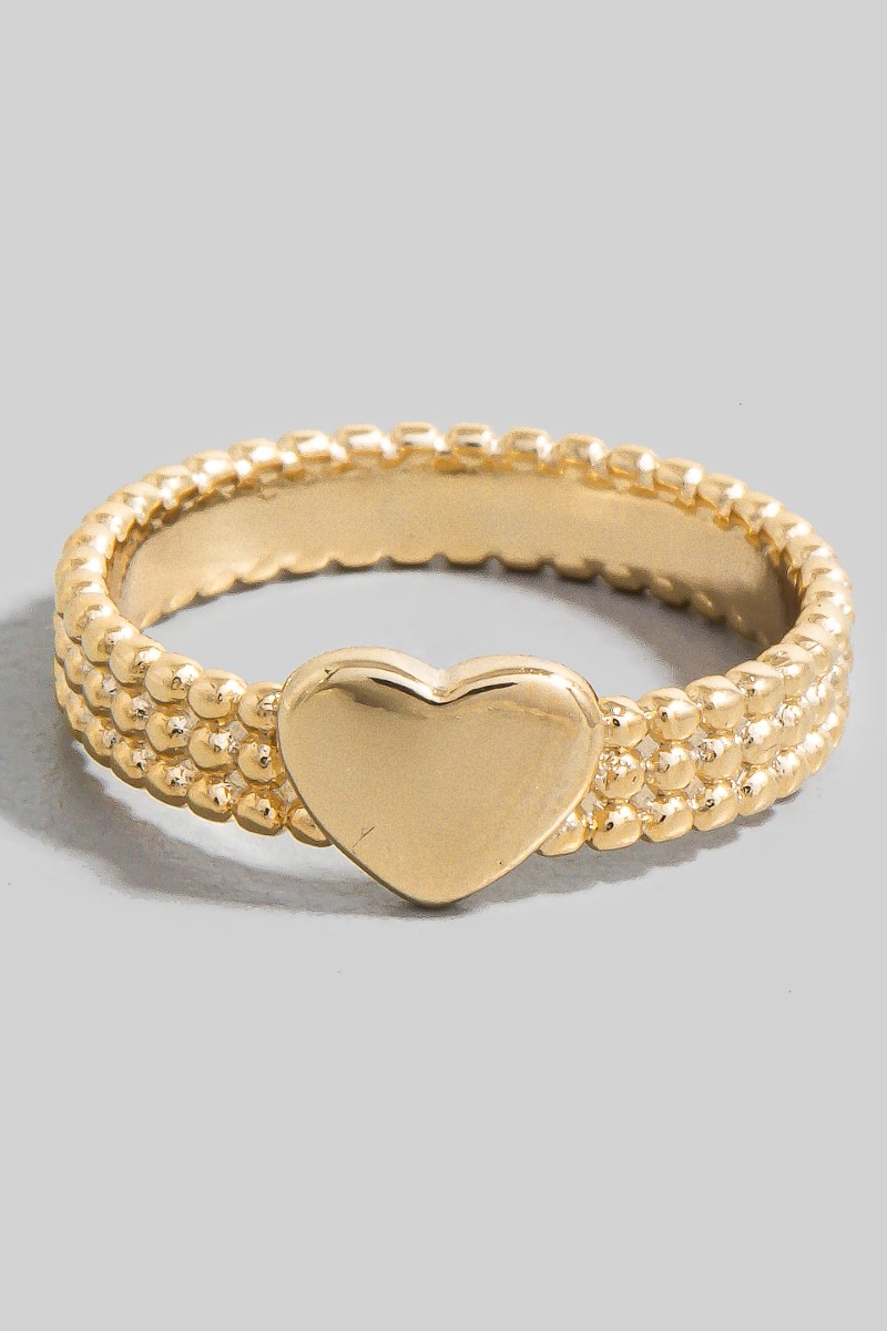 - This ring features a fashionable heart station textured band style. Immerse yourself in fashion finesse with this statement ring.