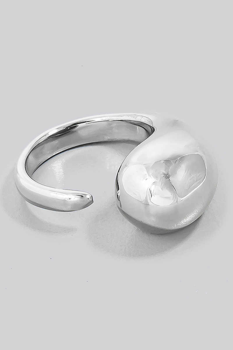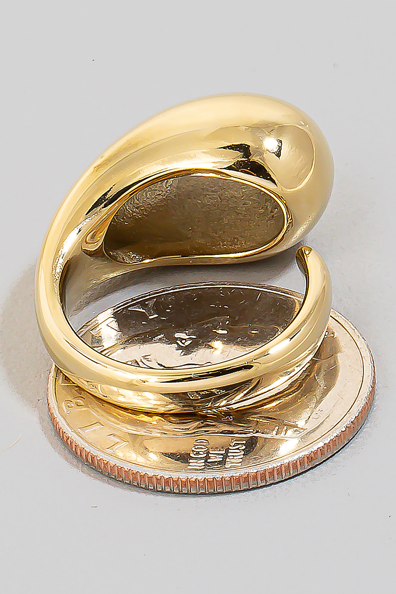 • This ring displays a fashionable large metallic tear wrap around open band style. Experience the joy of accessorizing with this piece that effortlessly combines versatility and charm.