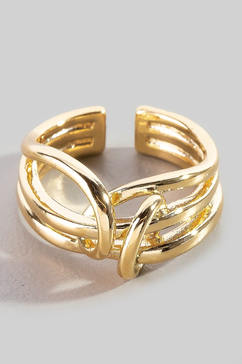 - This ring showcases a timeless layered knot style. Delight in the nuanced details that make this ring a testament to fine design and impeccable taste.