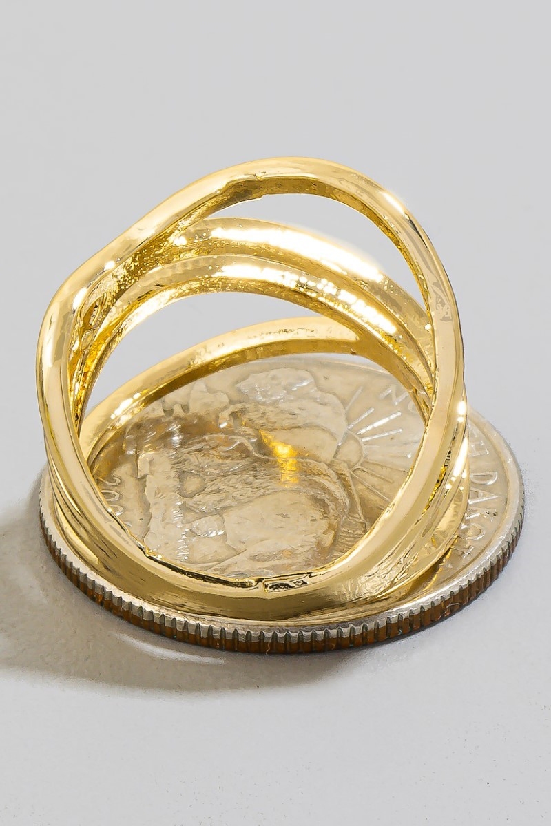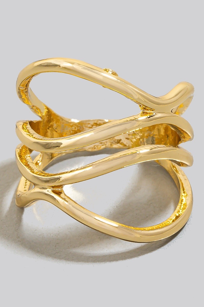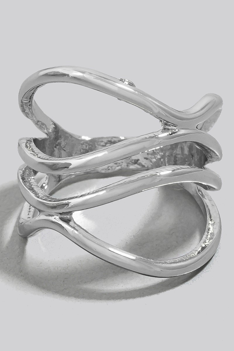 • This ring adds a modern layered multi strand open band style. Elevate your ensemble with this ring that effortlessly captures the essence of refined fashion.