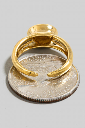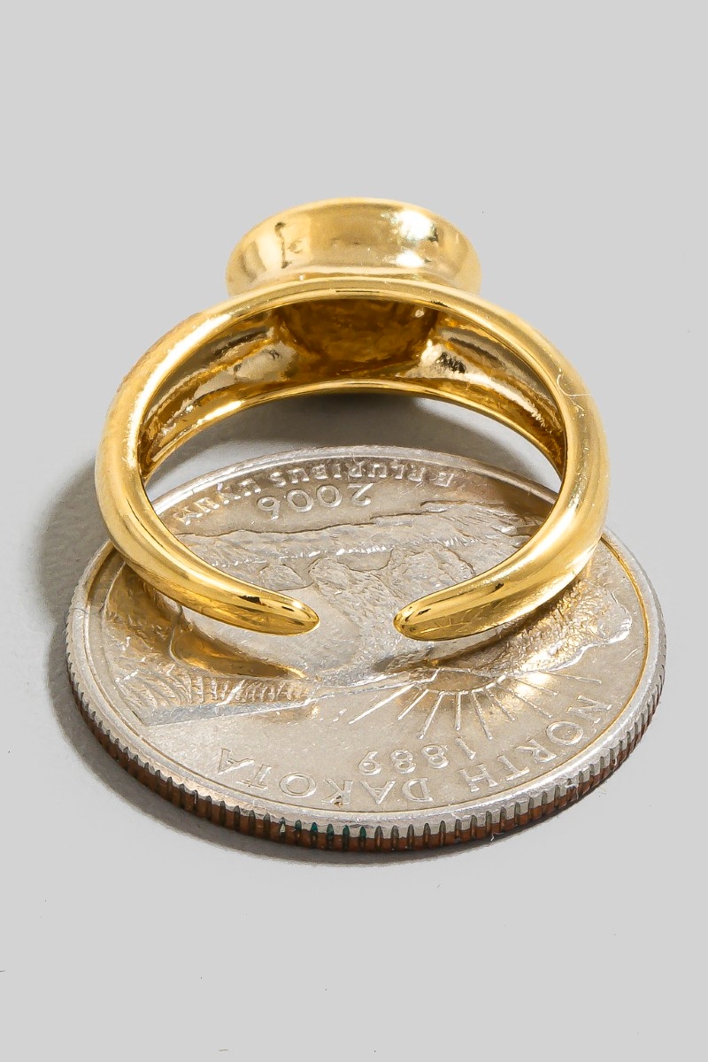 • This ring displays a vibrant bold metallic oval ball style. Delight in the nuanced details that make this ring a testament to fine design and impeccable taste.