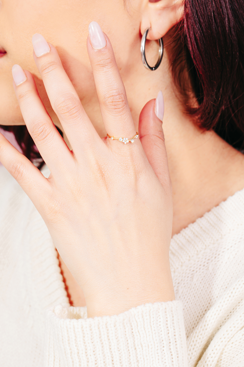Gold Dipped Cz Butterfly Flower Ring