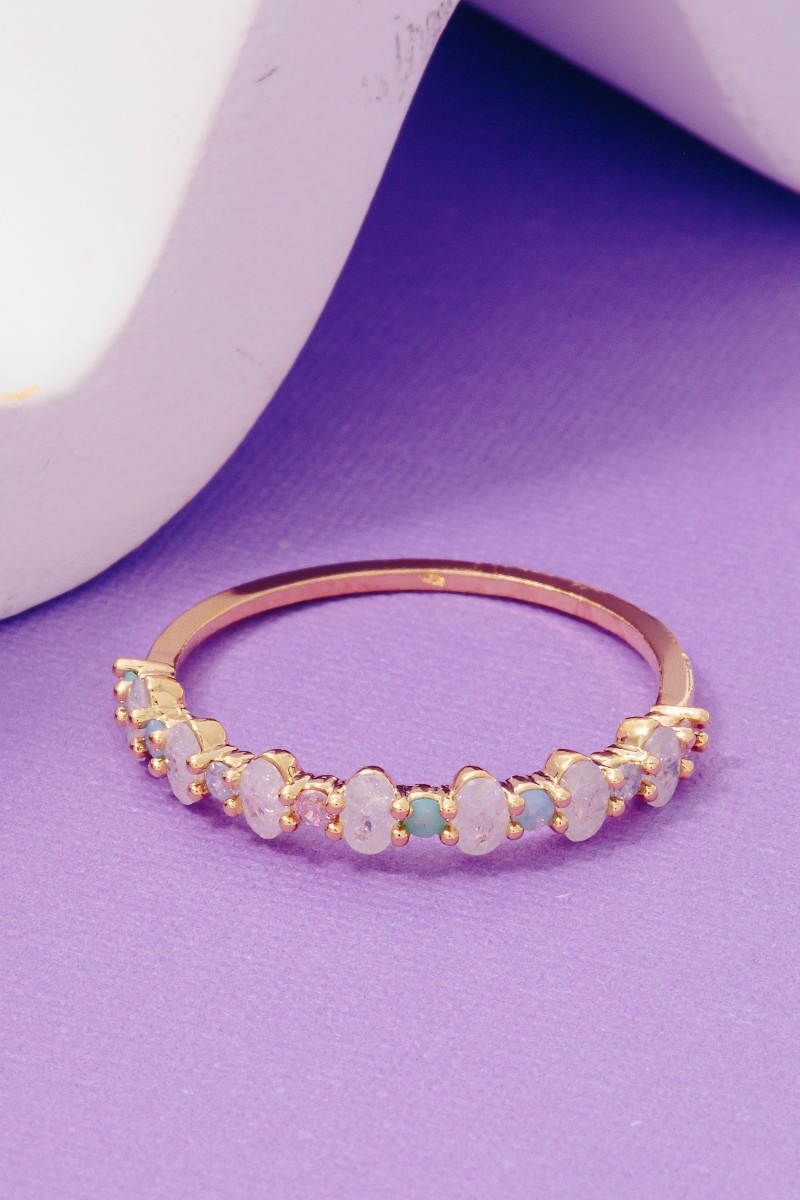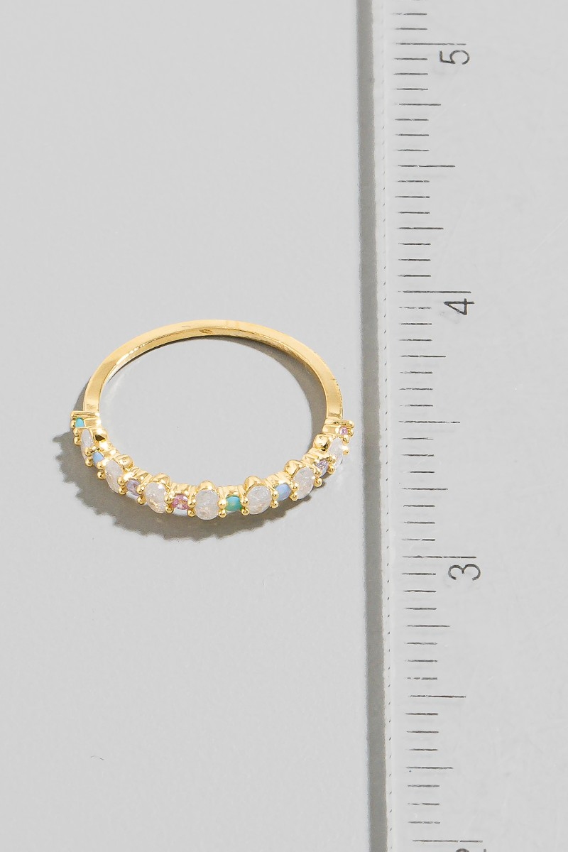 • This ring displays a fashionable gold dipped assorted cubic zirconia style. Elevate your ensemble with this chic, timeless ring.