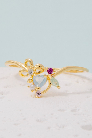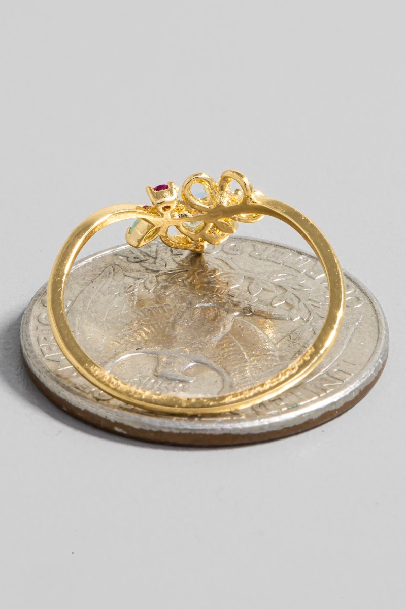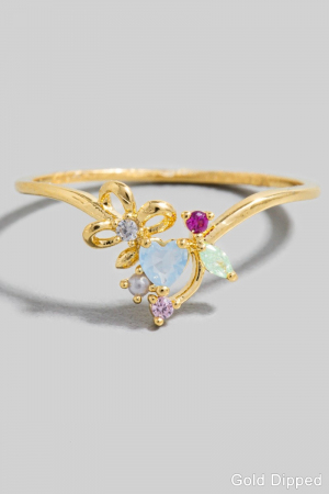 Gold Dipped Multi Cz Butterfly Heart Ring