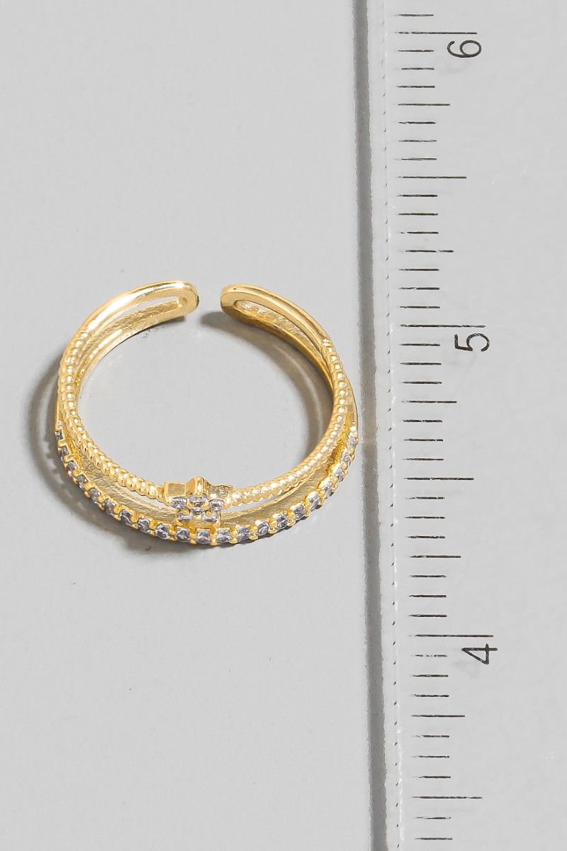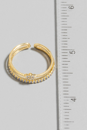 - This ring features a fashionable gold dipped cubic zirconia pave row and star open band style. Redefine your look effortlessly with this standout, on-trend piece.
