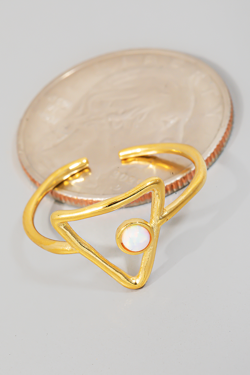• This ring features a fashionable gold dipped gold dipped triangle and opal open band style. Delight in the nuanced details that make this ring a testament to fine design and impeccable taste.