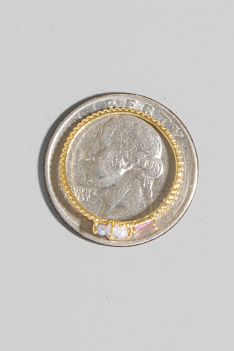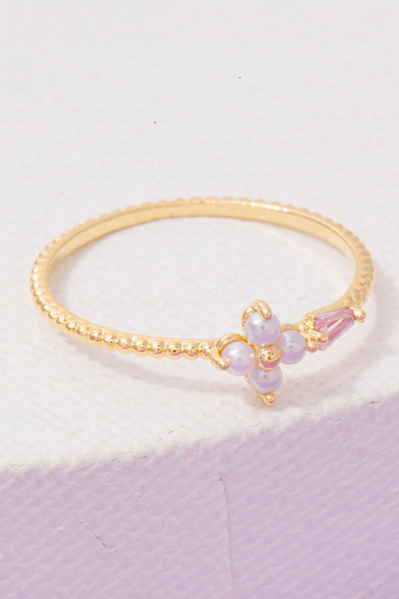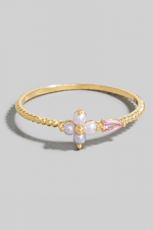 • This ring introduces a unique gold dipped pearl flower cubic zirconia style. Explore a blend of classic charm and contemporary flair.