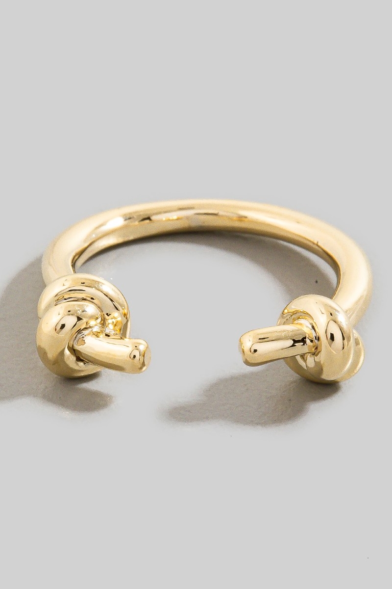- This ring adds a modern knotted ends open band style. Elevate your ensemble with this ring that effortlessly captures the essence of refined fashion.